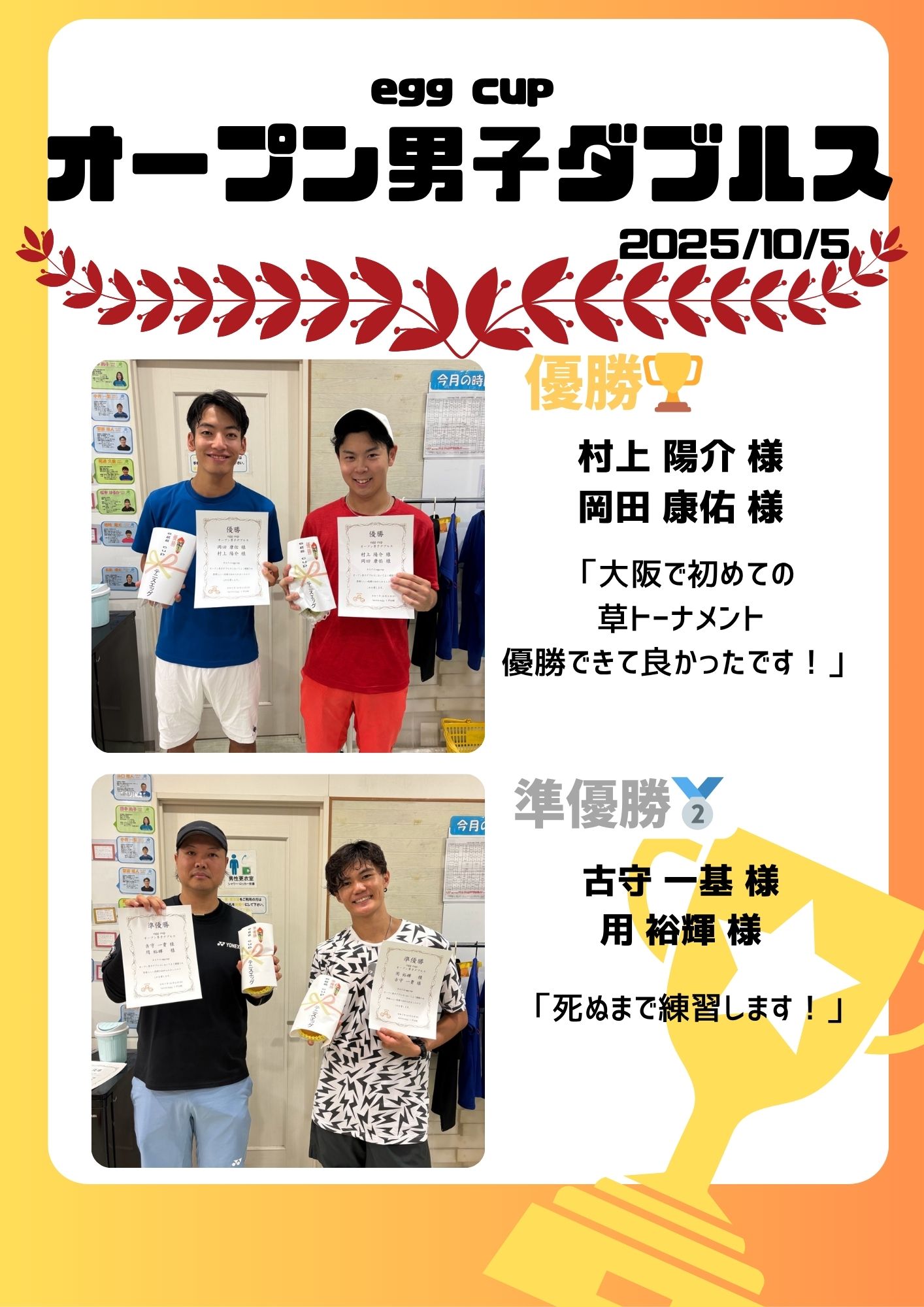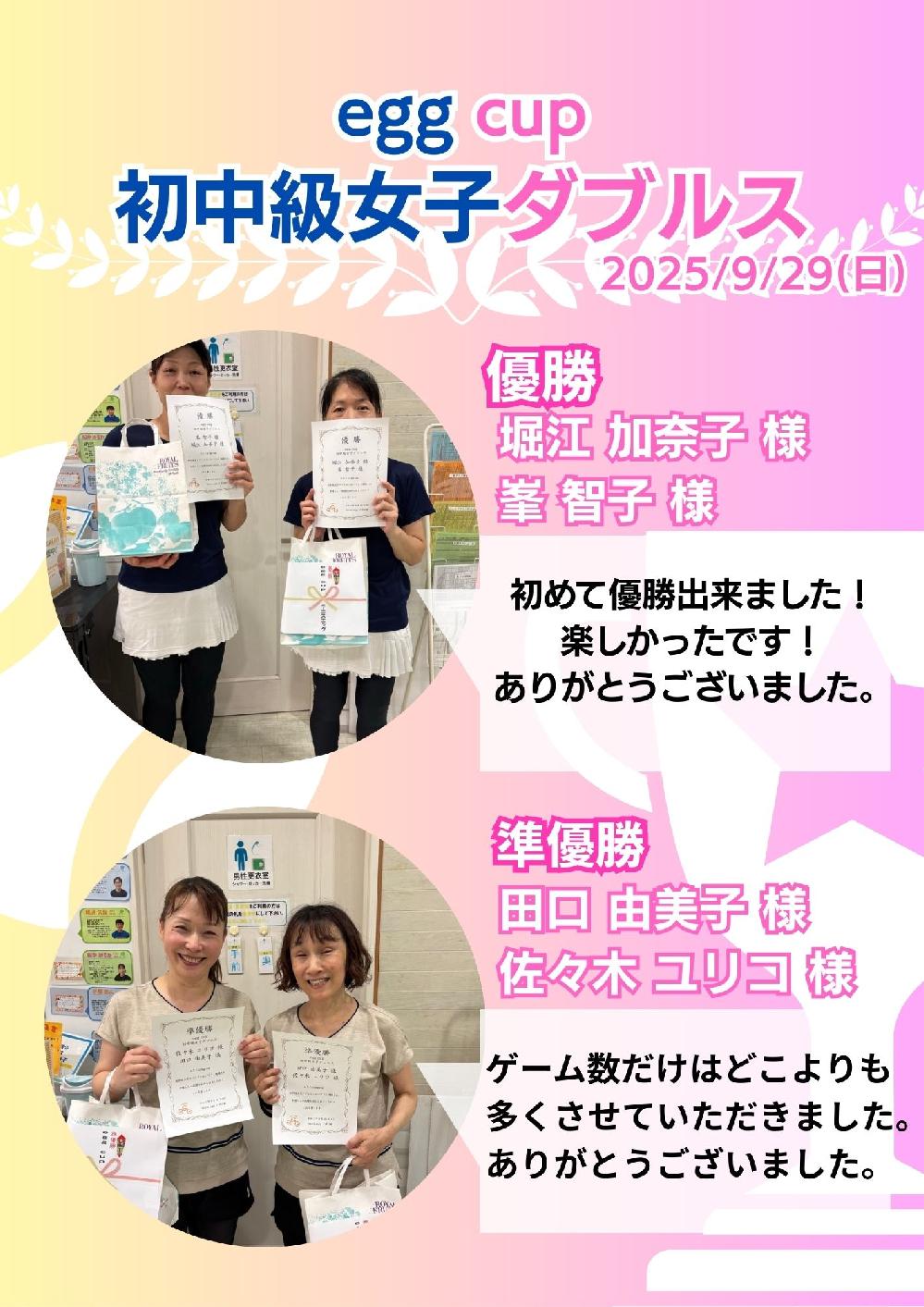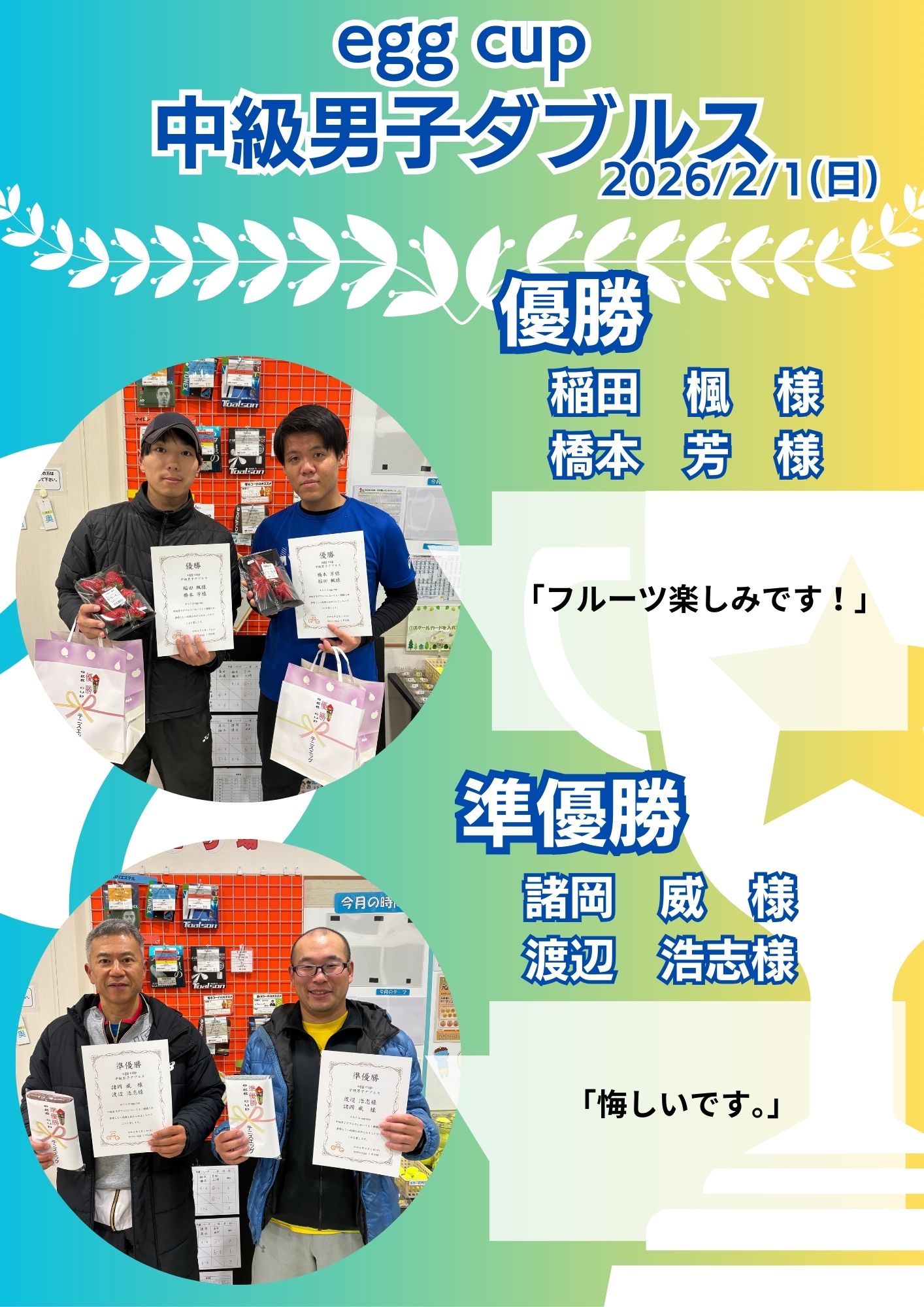 優勝 川人 一也様 初優勝嬉しいです。 今宮 香澄様 「ペアのおかげです。ありがとうございました。」